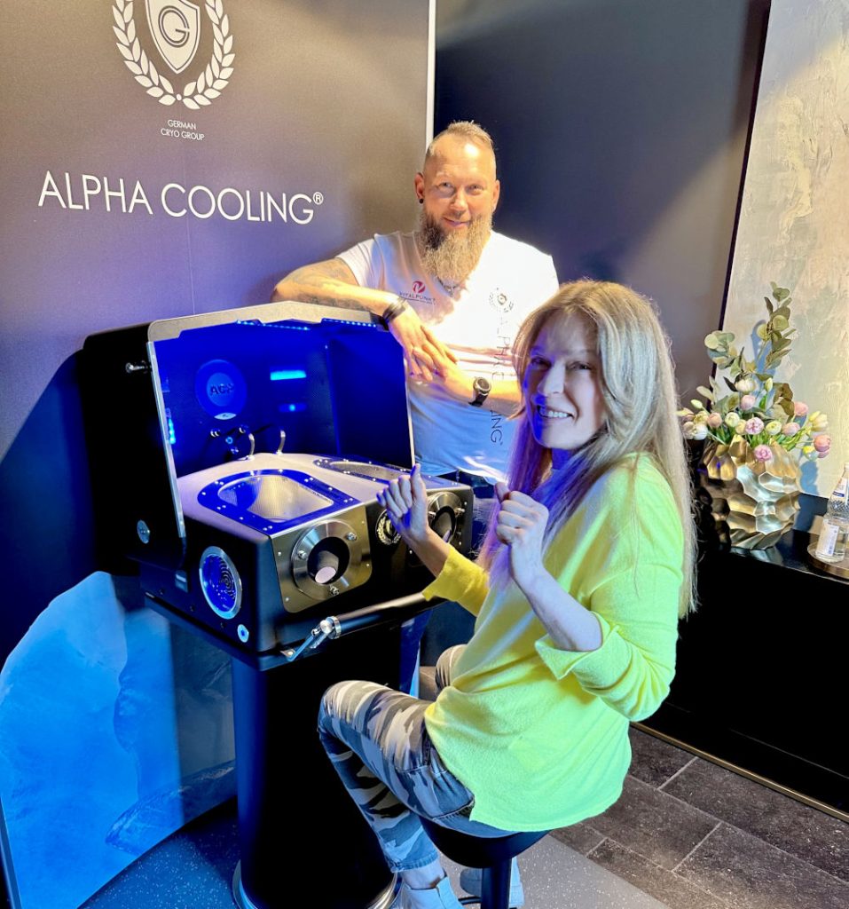 Alpha Cooling ist eine professionelle Kälteanwendung. Diese ursprünglich zur Leistungssteigerung für Sportler entwickelte Methode kombiniert die Kühlung des Blutes über die Handflächen mit einem definierten Unterdruck. Der Unterdruck verhindert, dass die Kapillargefäße geöffnet bleiben und dadurch gelangt das leicht abgekühlte Blut in den Kreislauf.